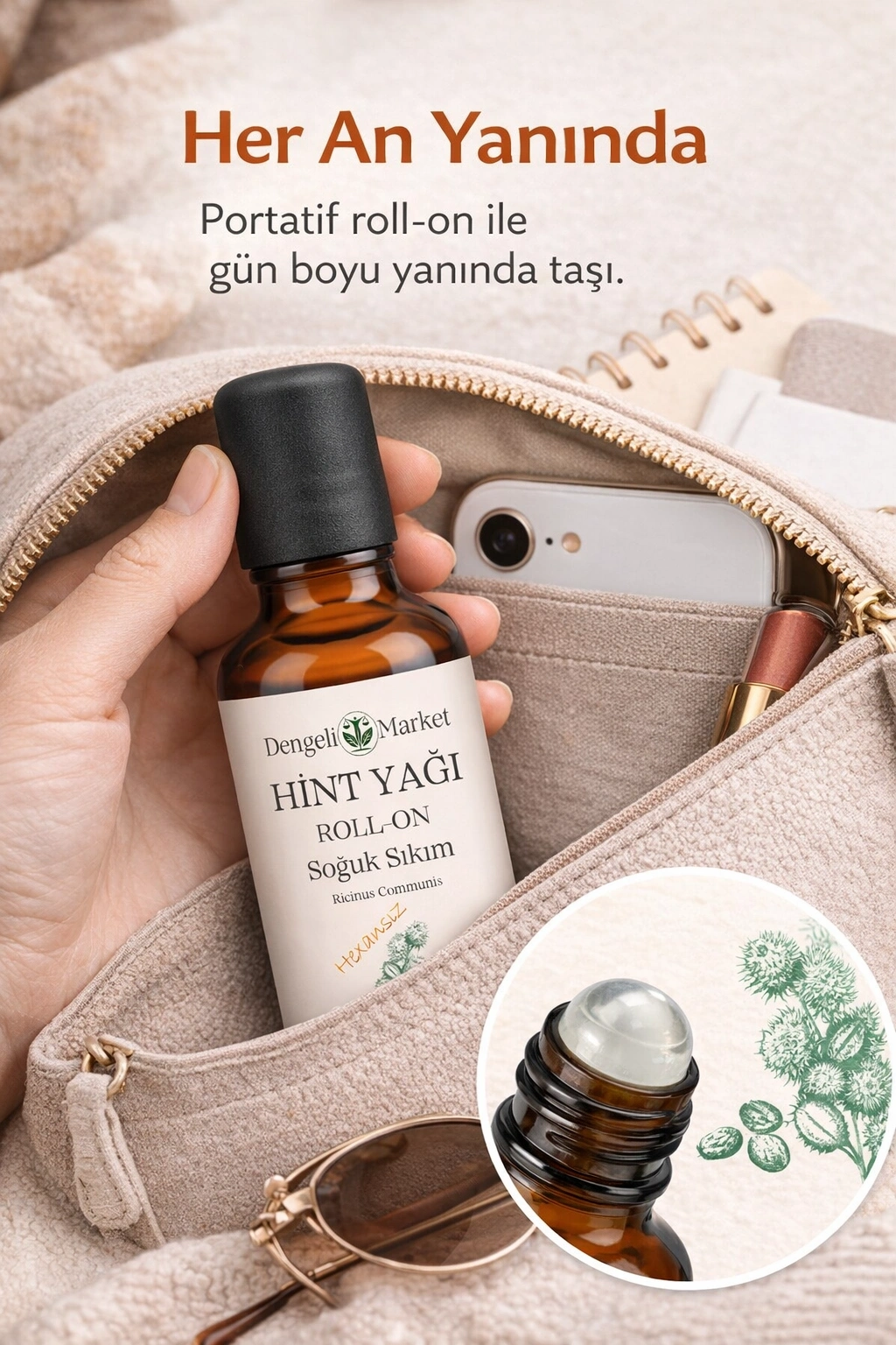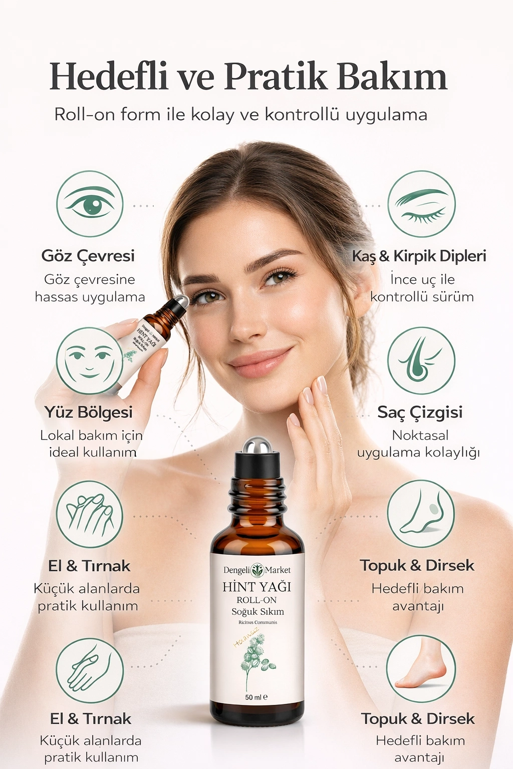 Hint Yağı Roll On 50 ml | Hekzansız | Soğuk Sıkım | Pratik Kullanım | Cam Şişe | Doğal Bakım Yağı