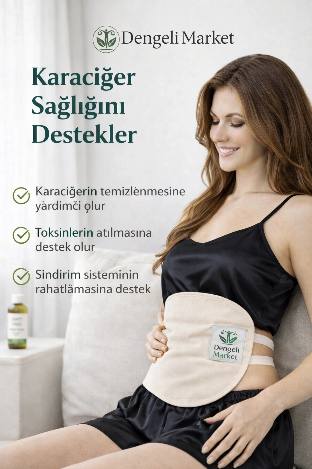 Karaciğer bölgesi sargı bezi, Hint yağı paketi uygulamalarında kullanılmak üzere tasarlanmış, tekrar kullanılabilir ve sızdırmaz yapıya sahip bir tekstil ürünüdür. Gövde formuna uyum sağlayan yapısı sayesinde kullanım sırasında konfor sağlar.